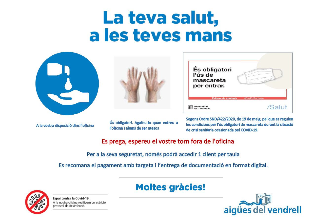 aigües del vendrell torna a obrir les oficines per a tu el dia 1 de juny