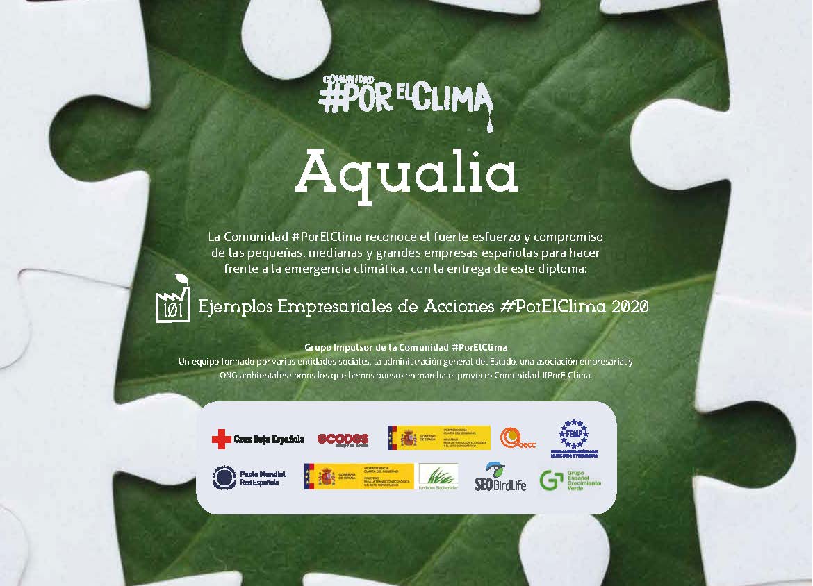 En la edición de 2019, el proyecto All-gas de innovación de Aqualia también fue incluido en la selección de iniciativas empresariales #PorElclima, cuya presentación se realizó en el marco de la cumbre climática COP25 celebrada el pasado diciembre en Madrid. En el contexto de la actual emergencia climática, la Comunidad #PorElClima, formada por empresas, organizaciones, administraciones públicas y entidades de ciudadanos, tiene como objetivo concienciar a toda la sociedad del gran reto medioambiental al que nos enfrentamos y buscar soluciones para cumplir con el Acuerdo de París y los Objetivos de Desarrollo Sostenible (ODS).