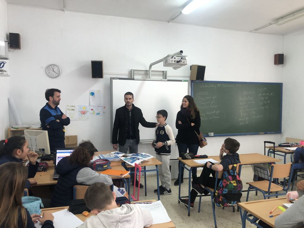 Frente a sus compañeros de clase, José María ha recibido su premio de manos de la Técnico de la Delegación de Educación del Ayuntamiento, el jefe de servicio de Aqualia y la jefa de planta de la depuradora, Laura Moreno.  Su premio ha sido un smartwatch.